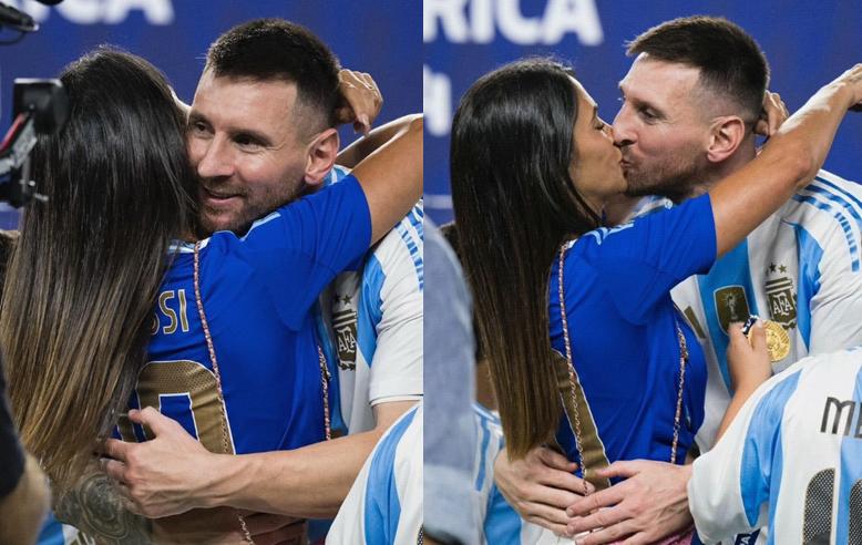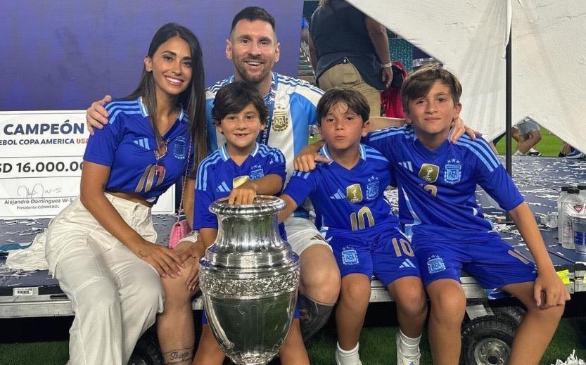 這也讓梅西、迪瑪利亞、奧塔門迪這些老將倍感欣慰,至少他們選擇離開,並不意味着阿根廷足球的凜冬將至,相反,“潘帕斯雄鷹”更加年輕,越飛越高。所以,賽後梅西戴着金牌,露出孩子般的笑容,他無比幸福與知足,並且對國家隊的未來充滿信心,此外,安東內拉和三個兒子也來到現場,梅西夫婦當衆接吻秀恩愛,畫面實在太美好了!