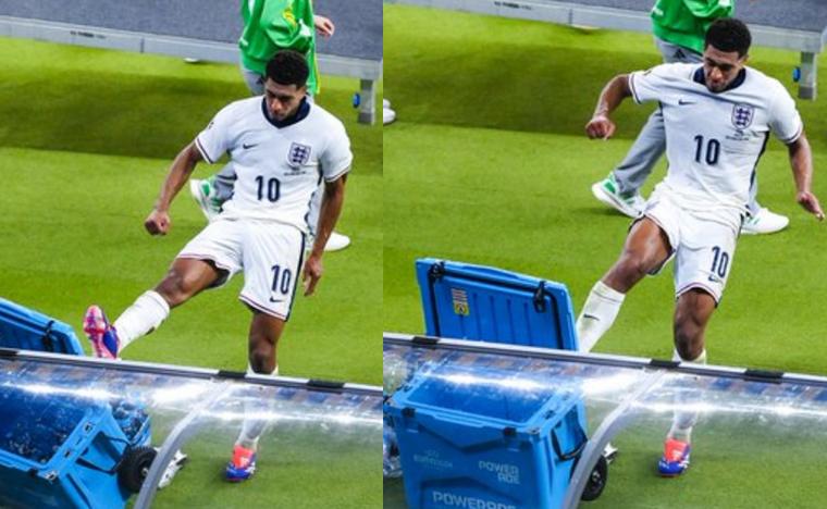 不僅是凱恩,英格蘭王牌貝林厄姆丟冠之後也是非常崩潰,視頻顯示,貝林厄姆賽後走下球場,憤怒地踢翻了替補席旁的儲水箱,看得出來他心有不甘,總之這場決賽失利,對這個年輕人的打擊還是非常沉重的,對此,你怎麼看呢?