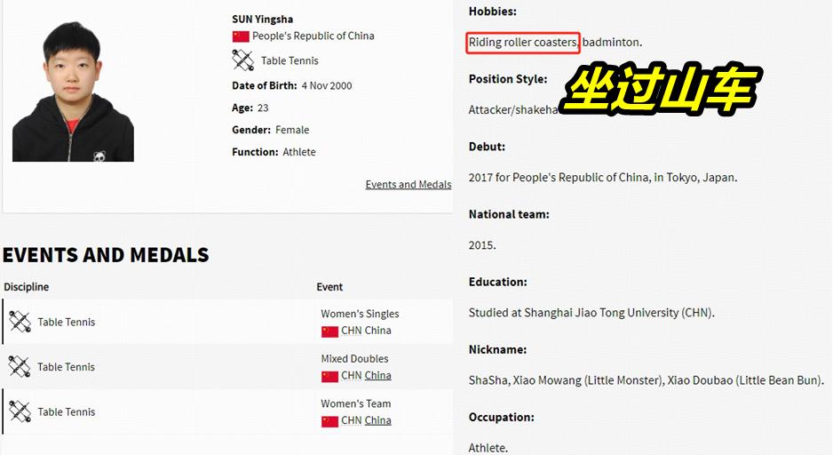 奧運官網:孫穎莎愛坐過山車!綽號小豆包,樊振東喜歡唱粵語歌