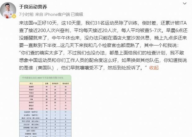不僅如此,就連國際興奮劑檢測組織的工作人員都表示,中國隊被抽查的頻率與次數實在太多了,並且他們也沒想到中國運動員可以如此配合,要是換了其他隊伍,早就到處投訴了。
