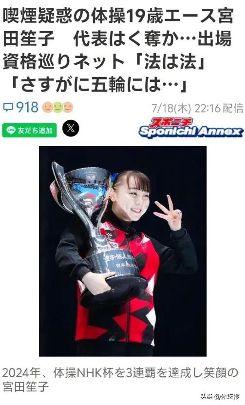 距巴黎奧運會開幕僅剩不到一週的時間,日本19歲女子體操隊隊長宮田笙子卻深陷吸菸醜聞,疑似被剝奪巴黎奧運會資格。昨日,該消息被徹底證實。