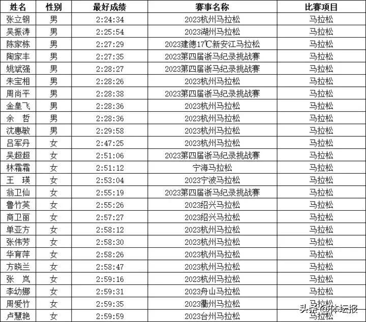 堪稱浙江馬拉松的“大神”榜單