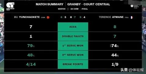 7月22日凌晨,格蘭比75k挑戰賽在加拿大魁北克迎來決賽日,在男單決賽中,浙江選手布雲朝克特以賽會6號種子身份苦戰三盤後以6:3、6:7(7)、6:4挑落2號種子、法國選手阿特瑪納,收穫本賽季第二個挑戰賽冠軍,也是個人生涯第三個挑戰賽冠軍。