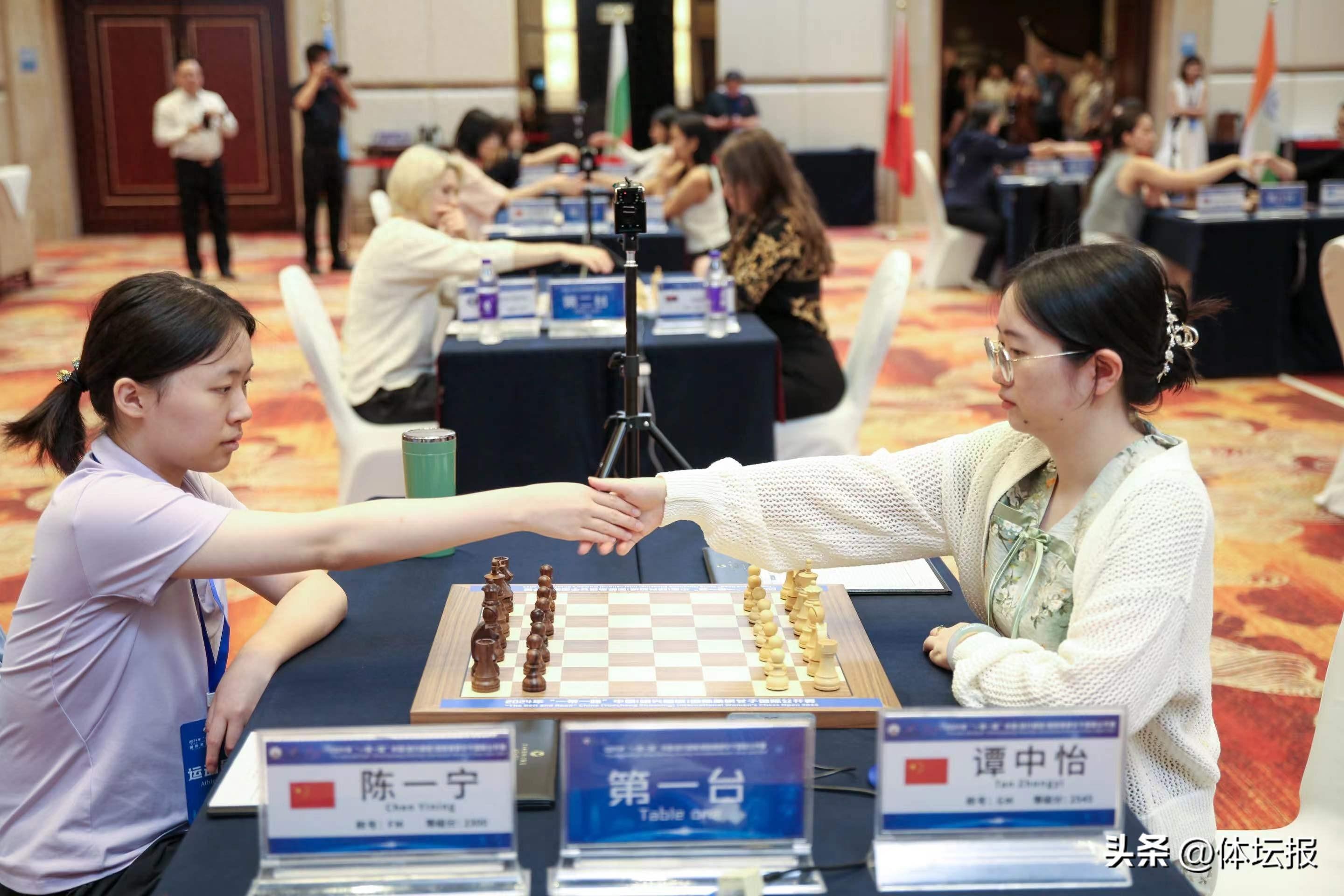 7月24日—8月3日,2024年“一帶一路”中國(紹興越城)國際象棋女子國際公開賽在紹興咸亨大酒店舉行,吸引了來自中國、印度、哈薩克斯坦等9個國家32位國際等級2000分以上的高水平棋手參賽。比賽採用國際棋聯最新規則,9輪瑞士積分制的比賽方式,每方棋手基本用時90分鐘,每走一步加30秒。在7月24日下午14點打響的首輪比賽中,賽會頭號種子譚中怡僅以34回合戰勝小將陳一寧,取得開門紅。