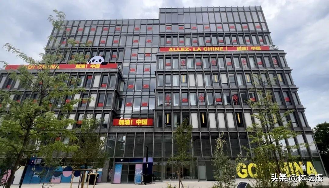 每個代表團都很用心,外牆懸掛着各式國旗,宛如是一場“萬國國旗大展”,這一裝飾烘托出濃厚的奧運氛圍。中國樓差不多是“樓王”位置,因此從柵欄外“中國紅”是看不真切的。