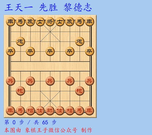 黎德志無法,只能棄車換紅雙炮,紅棋雙車馬過河兵同樣無極,黑方大勢已去,33回合,王天一退車盯馬,要平兵靠車,必得黑一子,黑方投子認負。