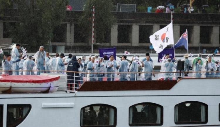 而當韓國代表團的巡船經過的時候,雨勢越來越大,不少運動員都穿上了透明雨衣,但依然顯得比較狼狽,不過開幕式播報員的低級失誤,或許更讓韓國人“心碎”。