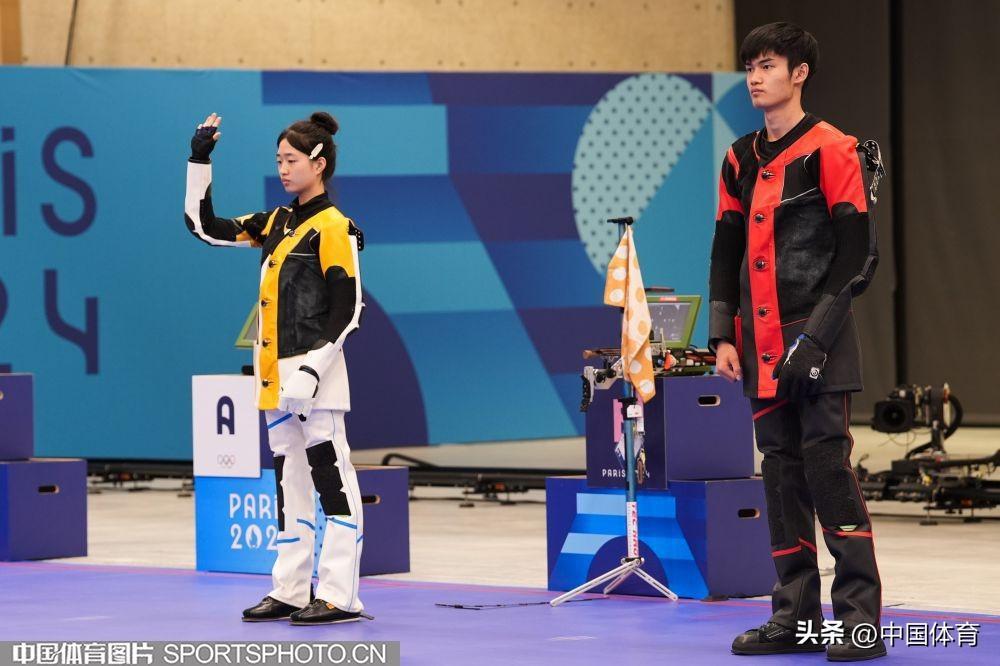 中國體育訊 當地時間7月27日,巴黎奧運會射擊混合團體10米氣步槍金牌賽在沙託魯射擊中心舉行。中國組合黃雨婷/盛李豪以16比14擊敗韓國組合樸是晙/金智賢,獲得冠軍。這是中國代表團在本屆奧運會的首枚金牌,也是本屆奧運會誕生的首枚金牌。(中國體育圖片 倪敏哲 攝)