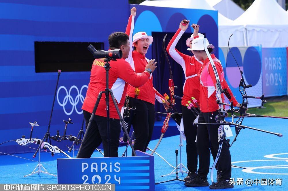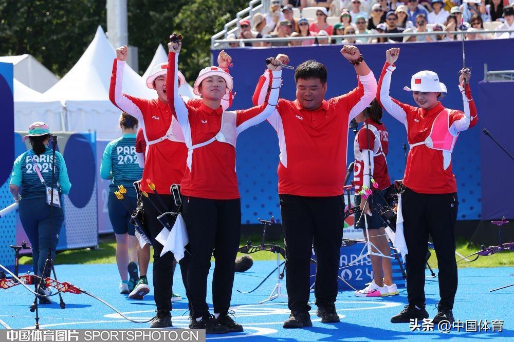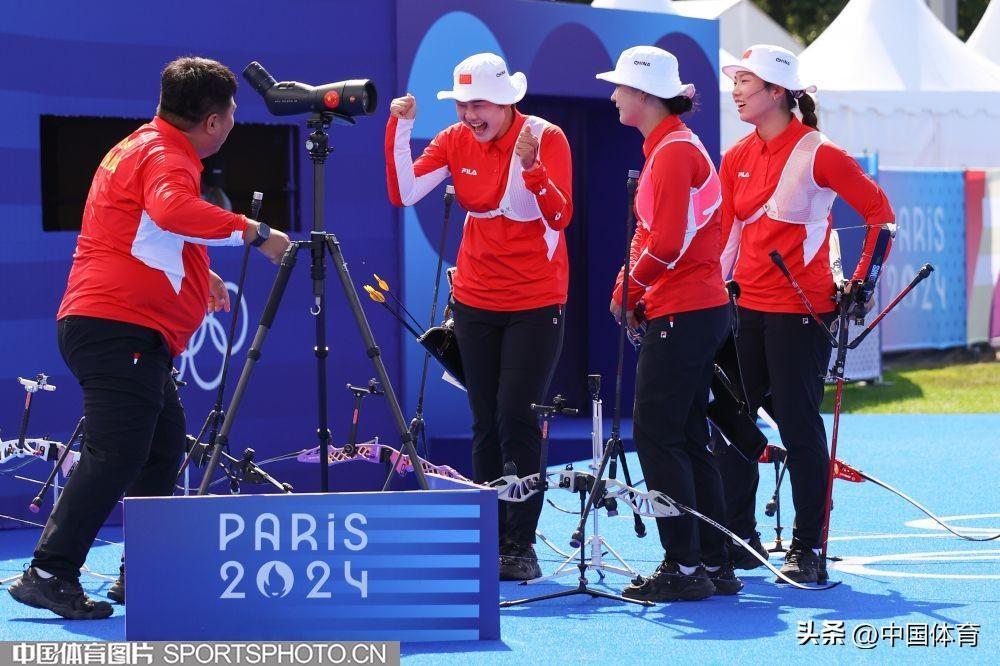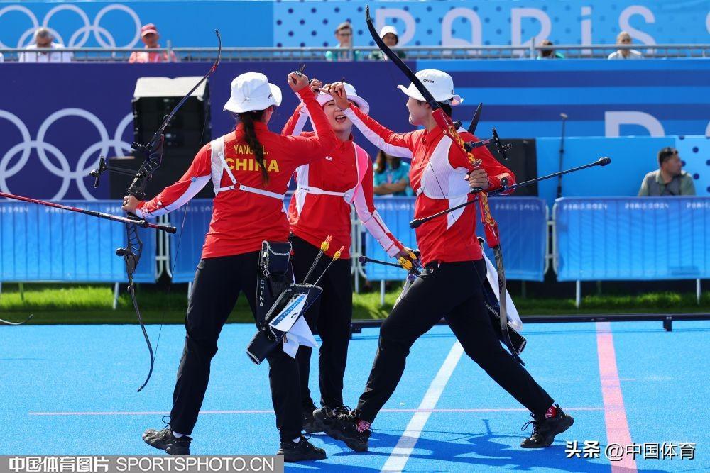中國體育訊 當地時間7月28日,巴黎奧運會射箭女子團體半決賽在榮軍院舉行。中國隊5比3擊敗墨西哥隊,晉級決賽。(中國體育圖片 安靈均 攝)李佳蔓楊曉蕾安琦軒中國隊慶祝晉級決賽(左起)安琦軒,李佳蔓、楊曉蕾中國隊慶祝晉級決賽中國隊慶祝晉級決賽中國隊慶祝晉級決賽
