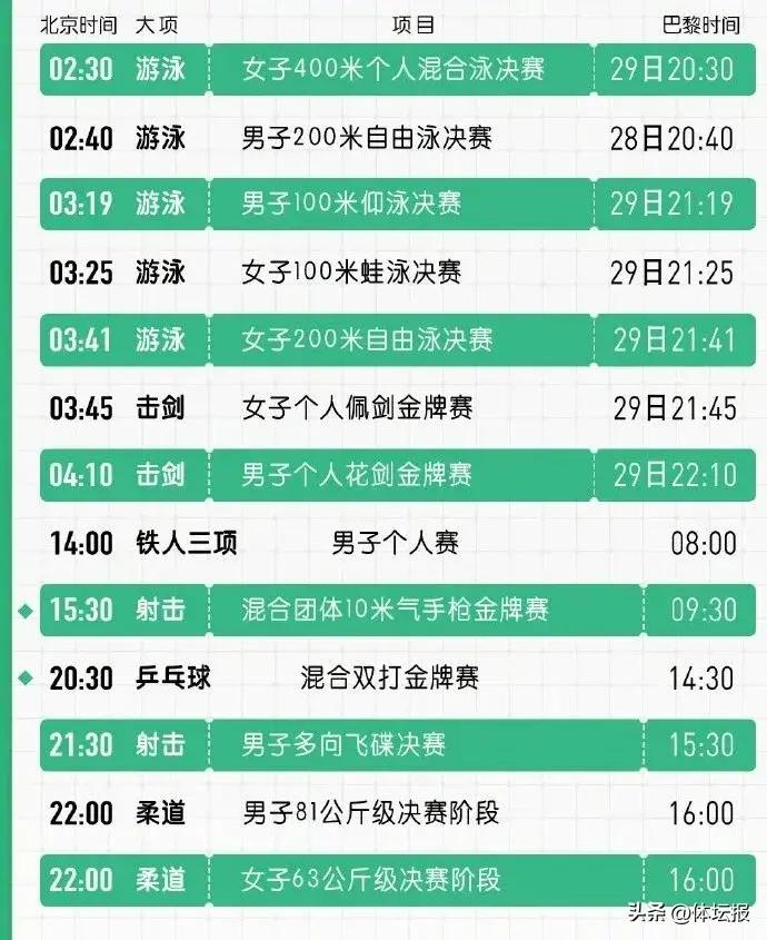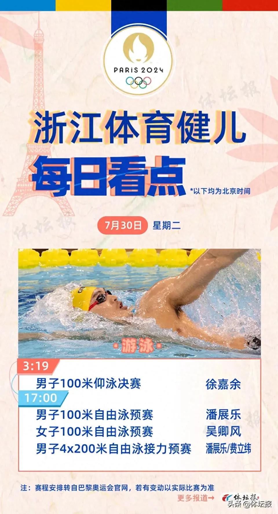 7月30日,巴黎奧運會將進入第4個正式比賽日(北京時間),這一天共將產生13枚金牌。游泳北京時間3:19,浙江運動員徐嘉餘將在男子100米仰泳決賽中向金牌發起衝擊。在該項目的半決賽上,“甲魚”以排名第一、52秒02的成績晉級決賽。第四次征戰奧運會,他的目標十分明確。乒乓球北京時間20:30,孫穎莎/王楚欽將在混雙決賽衝金。圖自王楚欽微博射擊北京時間15:30,姜冉馨/謝瑜和李雪/張博文將在10米氣手槍混團項目中力爭站上最高領獎臺。明日奪金看點圖自央視新聞