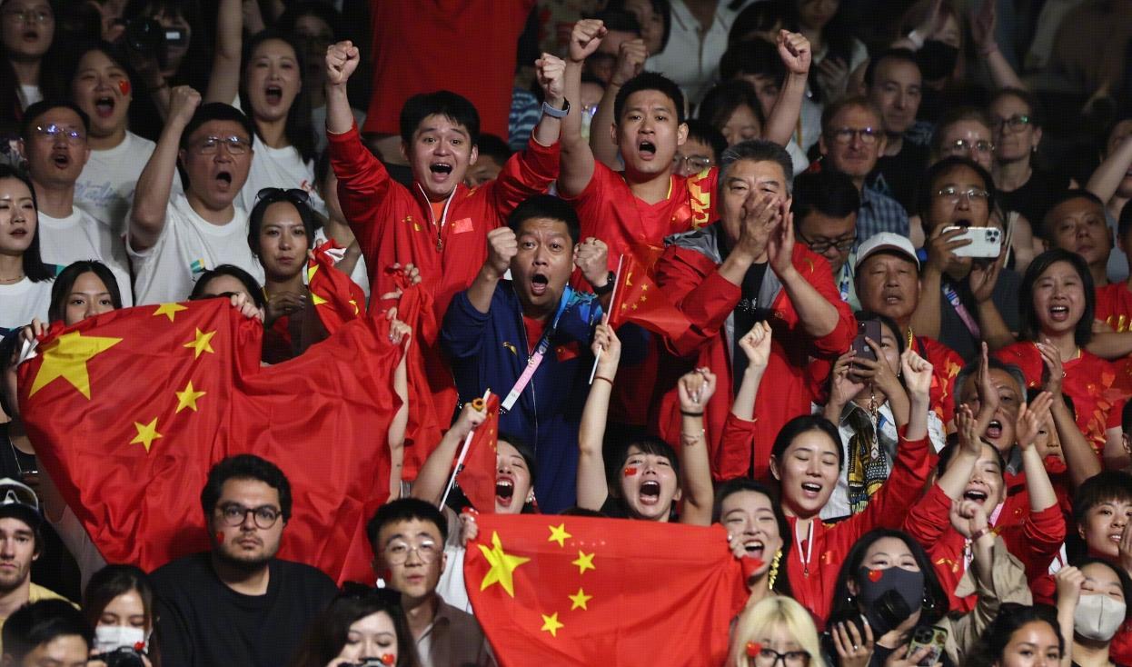 在頒獎儀式上,劉國樑親自給孩子們頒發榮譽,隨後國旗升起,旋律一響,看臺上數萬名中國觀衆在法國的場館內,一起高唱國歌,震撼又感動!