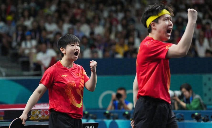 巴黎奧運會乒乓球混雙決賽,中國隊4比2艱難擊敗朝鮮黑馬組合,王楚欽與孫穎莎拿下這塊沉甸甸的金牌,這也是中國乒乓球隊第一個混雙項目奧運冠軍,奪冠之後,看臺上的國乒將帥興奮慶祝,振臂高呼,而場內的“莎頭組合”與主教練肖戰指導,一起舉起國旗,感謝現場支持自己的球迷們。