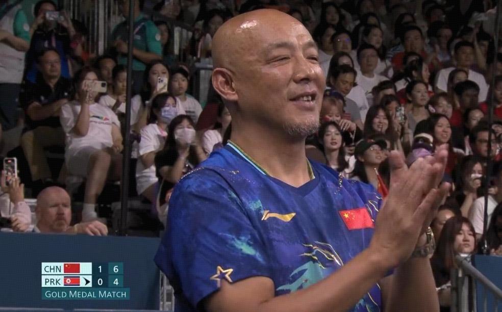 在第五局比賽,李正植金琴英放手一搏,扳回一城,但到了第六局,王楚欽與孫穎莎愈戰愈勇,漸入佳境,沒有再給朝鮮黑馬組合任何機會,率先拿到11分,總比分4比2,王楚欽與孫穎莎擁抱慶祝,中國隊有驚無險奪得了這枚乒乓球混雙金牌,拿下了中國體育代表團巴黎奧運的第6金,恭喜“莎頭組合”!