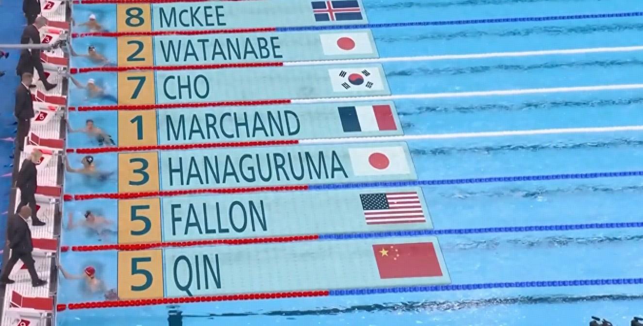 除了這次200米蛙泳無緣決賽,之前覃海洋還出戰了100米蛙泳決賽,本來是奪金熱門,結果前50米還表現突出,如離弦之箭,獨佔鰲頭,後半程徹底拉胯,被對手不斷甩開,滑落至末流,最終第七之位,難以置信。