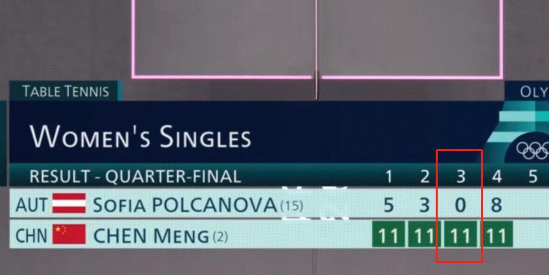 四局比分分別是11比5,11比3,11比0,11比8。你沒有看錯,在比賽第三局的時候,陳夢居然打出了一個11比0,沒有給對手一點“面子”!