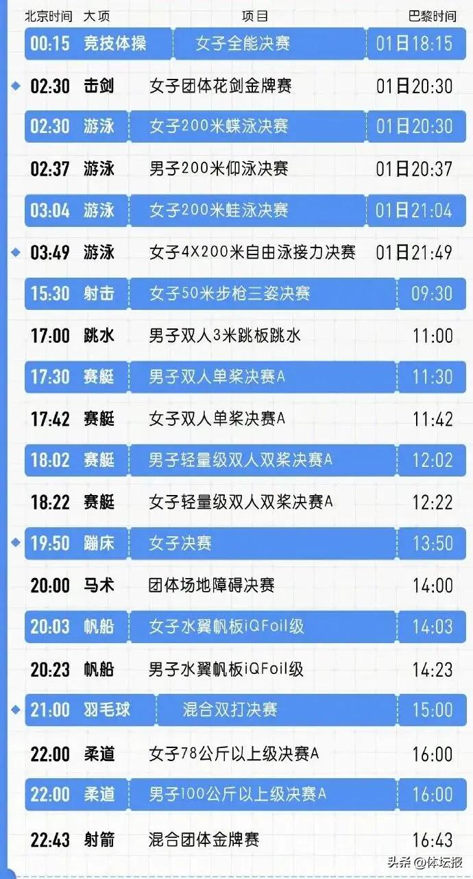 北京時間8月1日,巴黎奧運會共將產生20枚金牌。