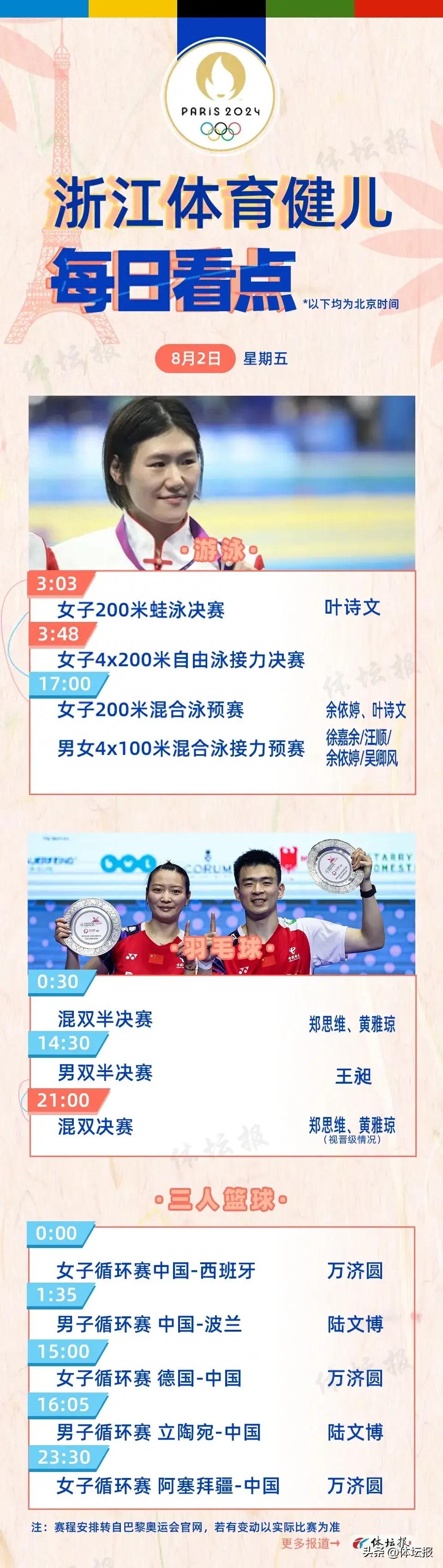 北京時間8月2日21:00,混合雙打項目決賽即將上演。此前浙江組合鄭思維/黃雅瓊2比0戰勝馮彥哲/黃東萍晉級半決賽,他們有望實現中國羽毛球隊的金牌開門紅。