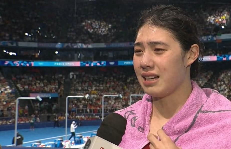 賽後的採訪環節,張雨霏哭了,她情緒徹底釋放,對着鏡頭,她表示自己才發燒,又是生理期的第一天,身體整個右半邊都是麻的,但張雨霏又帶着淚強調:“就是死,也要死在泳池裏!”