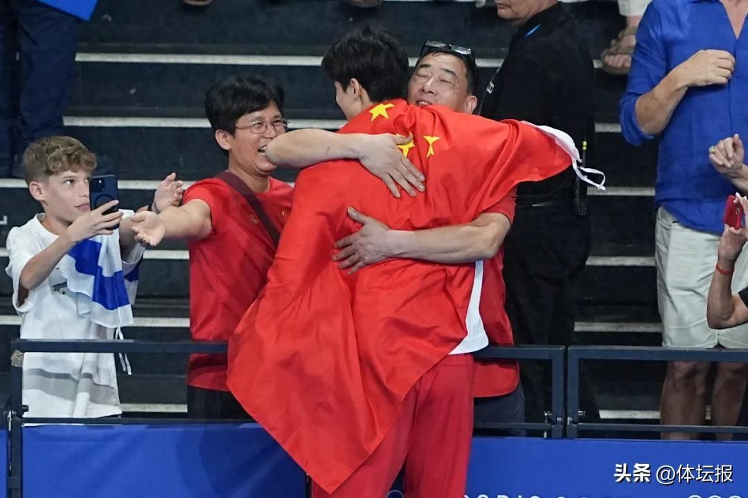 預賽結束上岸後,汪順遠遠地朝看臺向爸媽打了招呼;一枚寶貴的男子200米混合泳銅牌,結束了汪順的巴黎奧運會之旅,此刻他才迫不及待地跑到場邊,跟爸爸說“抱一抱吧”,父子倆緊緊地抱在一起,媽媽心疼地說“瘦了,瘦太多了”,此情此景令全場動容。