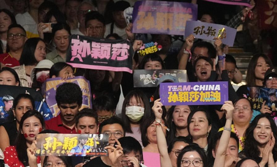 值得一提的是,這場比賽看臺上幾乎全部是孫穎莎的粉絲,她們舉着孫穎莎的燈牌,大喊吶喊,每當孫穎莎贏球的時候,現場立馬沸騰,氣勢排山倒海,然而當陳夢贏球的時候,現場聲音就小了很多,比較安靜,甚至連奪冠之後,導播找了好久才發現陳夢粉絲的身影。