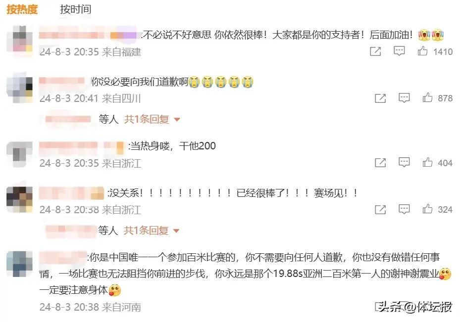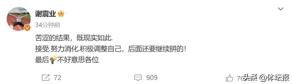賽後,謝震業發微博表示:後面還要繼續拼的!