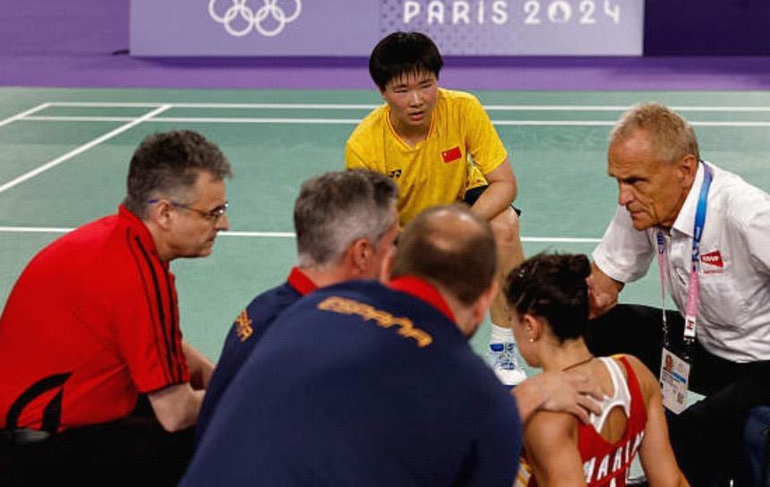 巴黎奧運會羽毛球女單半決賽中,中國選手何冰嬌對陣西班牙名將馬林 ,然而,馬林在大比分領先,場面上處於絕對優勢的開權限,意外受傷退賽!