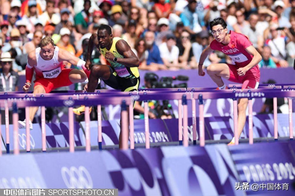 中國體育訊 當地時間8月4日,巴黎奧運會田徑男子110米欄預賽在法蘭西體育場舉行。中國選手徐卓一以13秒40的成績位列小組第一,晉級半決賽。圖爲徐卓一在比賽中。(中國體育圖片 安靈均 攝)徐卓一在比賽中