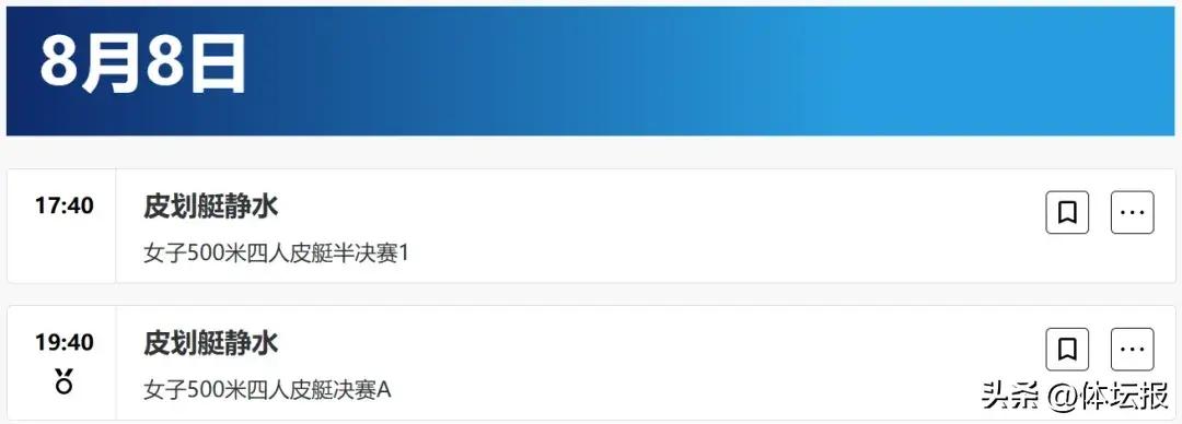 女子四人皮艇500米的半決賽和決賽將於8月8日進行。