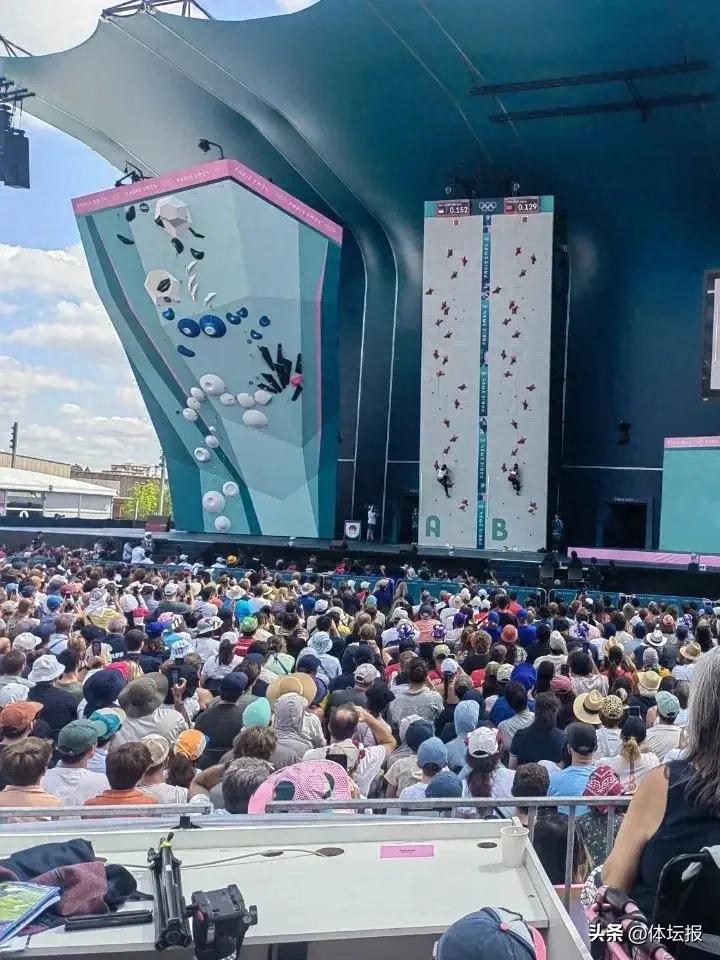 比賽在小城勒布爾歇的運動攀巖館進行。作爲一項時尚而刺激的新興運動,上萬人湧進比賽現場,歡呼聲、吶喊聲排山倒海,氛圍感拉滿。
