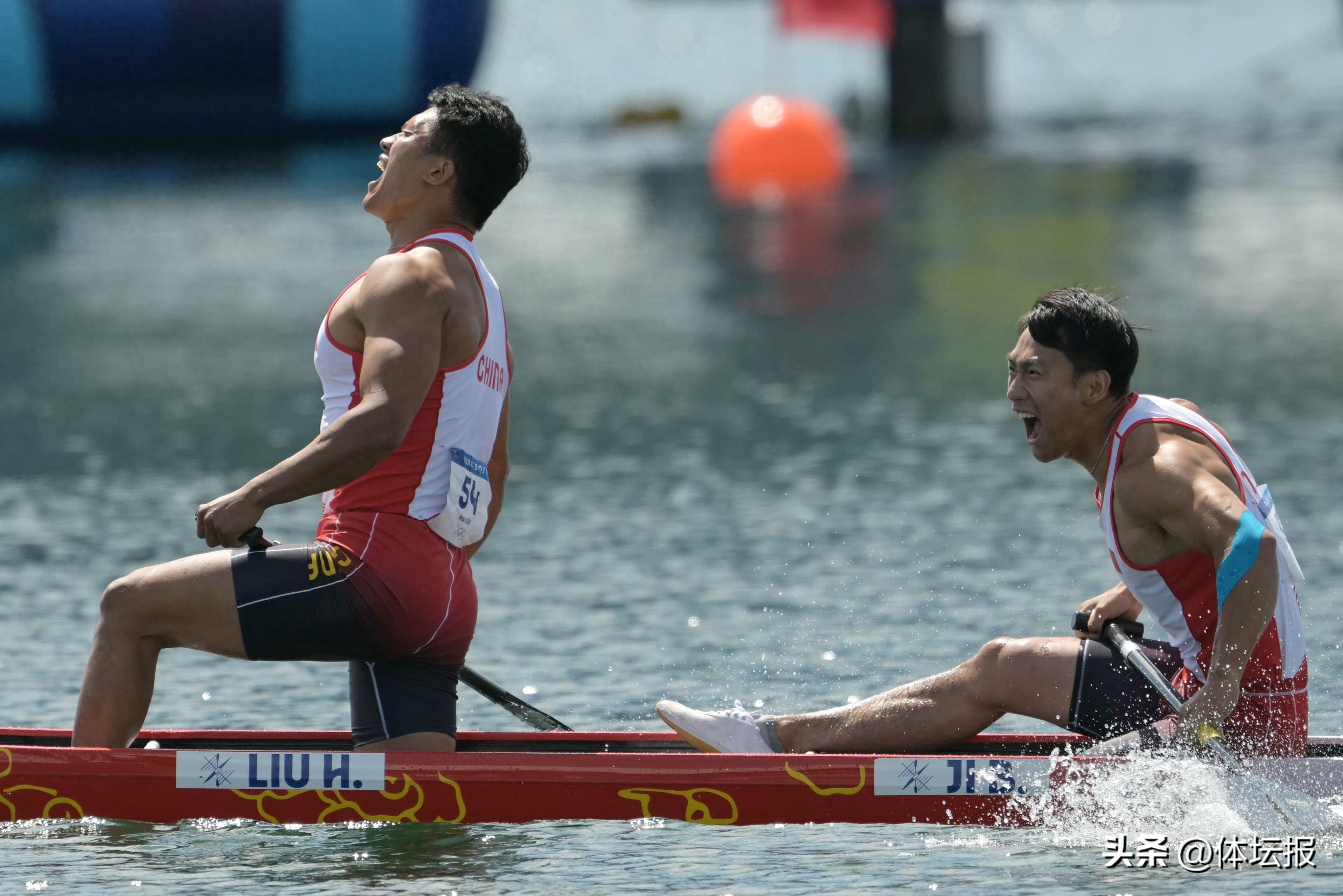 北京時間8月8日,2024巴黎奧運會男子500米雙人划艇決賽中,中國組合劉浩/季博文奪冠。