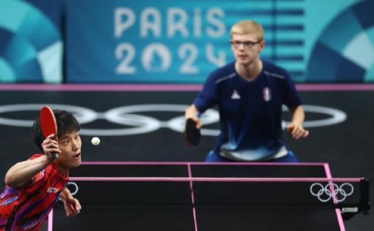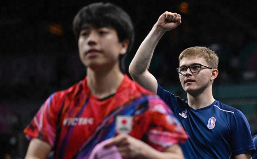 第一場雙方的男雙對決,法國組合西蒙高茨搭檔艾利克斯-勒布倫,結果他們兵不血刃,3比1擊敗日本組合,拿下了團體賽的第一分。彼時,雙方一單較量就很重要了,如果張本智和贏球,雙方戰平,如果菲利克斯-勒布倫獲勝,法國隊離獎牌就更近一步了。