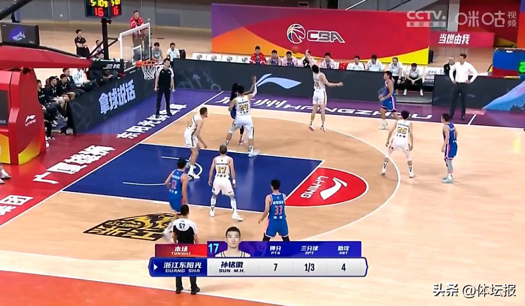 隨後,威爾哲吸引包夾後分球底角王欣瑞,後者張手命中三分,爲東陽光打開得分賬戶。爲了更好地應對塔比特,許鍾豪、趙巖昊替補登場,但連續的失誤和打鐵讓兩隊同時陷入得分荒。趙巖昊利用許鍾豪掩護後急停中投命中,幫助東陽光反超了比分。隨着許鍾豪最後一攻轉身中投打鐵,首節比分定格爲16:16。