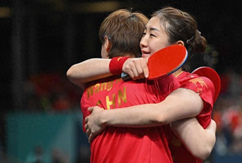 本場女團決賽,第一場由王曼昱搭檔陳夢,對戰日本組合張本美和早田希娜,這場比賽並不好打,雙方苦戰五局才分出勝負,而且國乒女雙都是在落後的局面下追分翻盤,決勝局也是如此,可以說,這場比賽稍有差池,我們就輸了,還好在關鍵分上,王曼昱與陳夢更有經驗,心理優勢也更強,所以才能熬過難關,擊敗日本組合。