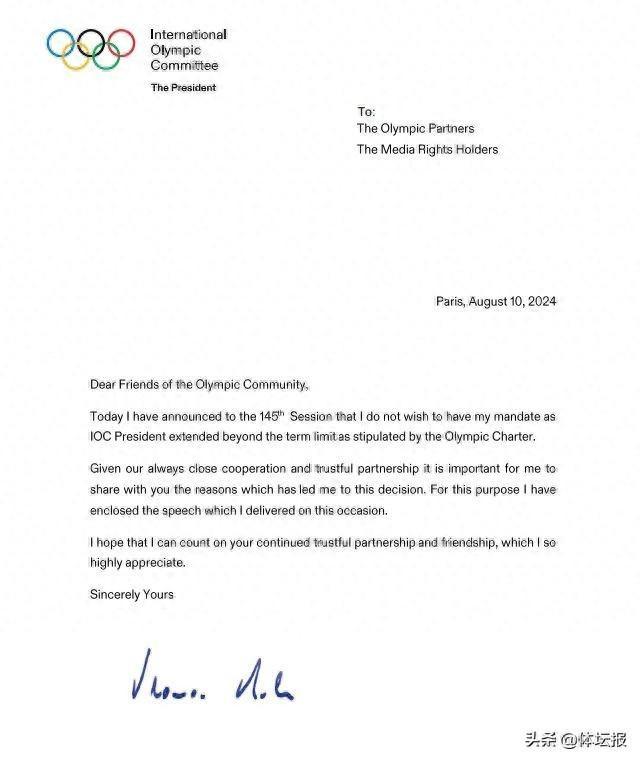 北京時間8月11日,國際奧委會宣佈:現任國際奧委會主席巴赫宣佈將不再連任。國際奧委會主席巴赫10日在國際奧委會第142次全會閉幕式上說,國際奧委會將於2025年3月在希臘古奧林匹亞舉行的會議上選舉新任主席,並表示自己不再尋求繼續擔任主席。巴赫說,新任主席將於2025年6月24日接任。巴赫於2013年9月10日當選爲第九任國際奧委會主席。2021年3月10日,巴赫連任國際奧委會主席,任期至2025年結束。來源:央視體育、新華社