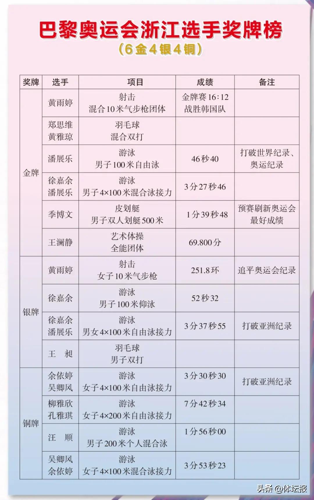 同時,浙江在捍衛連續11屆奧運會“屆屆有金牌”殊榮的同時,創造多項新紀錄——
