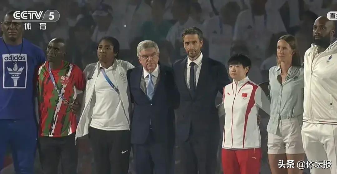 閉幕式上,孫穎莎代表亞洲運動員登場,和大家一起吹滅聖火(直播截圖)