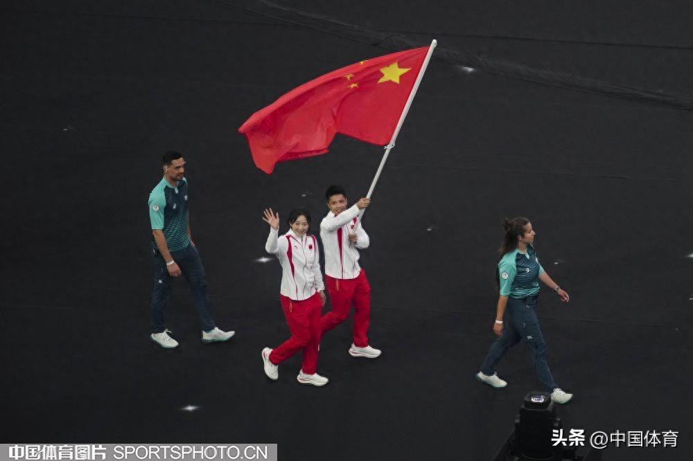 李發彬、歐紫霞高舉五星紅旗入場