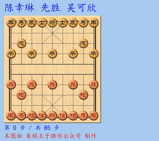 陳幸琳並不懼怕,紅棋破掉黑方的棄子搶攻,爾後車馬炮過河兵四子協力,沉底炮,中路車帥進攻,85手捷足先登,拿下勝利,陳幸琳獲得女子組冠軍,吳可欣取得亞軍。