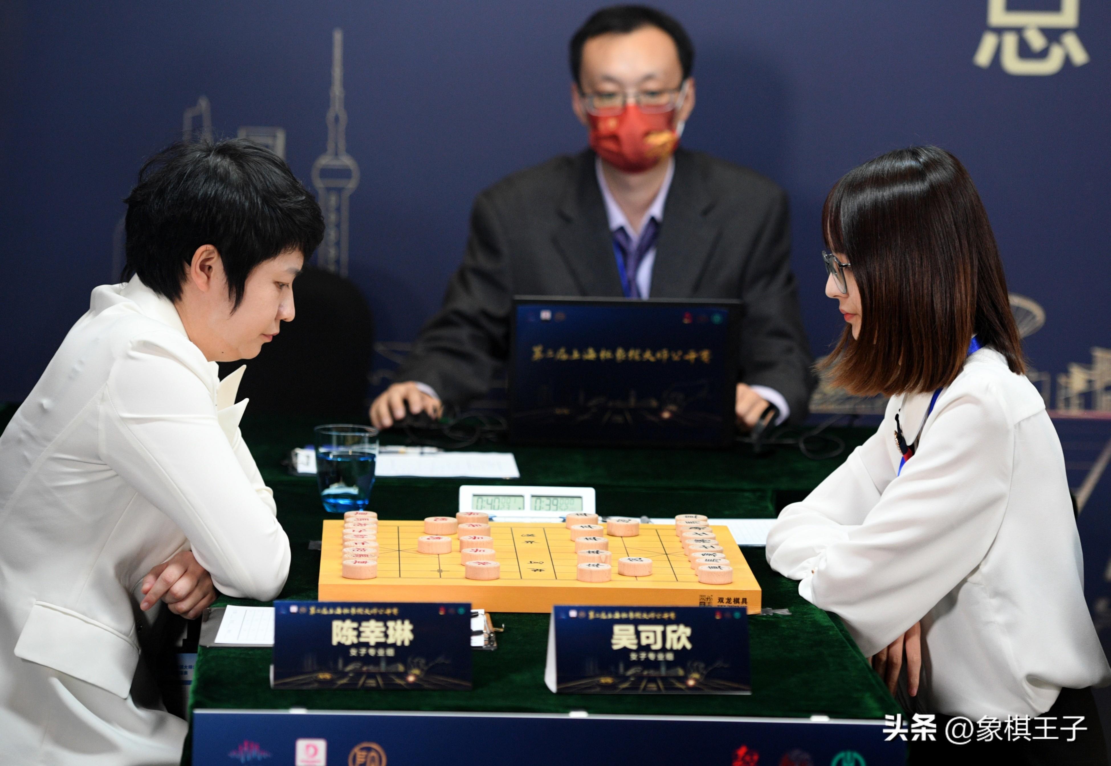 女子組的比賽,同樣進行的非常激烈,陳幸琳執先手佈下中炮進三兵陣,吳可欣應以屏風馬進3卒。