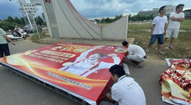 全氏宗祠前還掛上了全紅嬋摘金海報,引來了無數人拍照合影,村裏突然多了大量外地牌照的車,爲此,當地人還規劃了停車位、安排人指揮交通,村口的“邁合村”地標石碑甚至還加上了奧林匹克五環的標誌