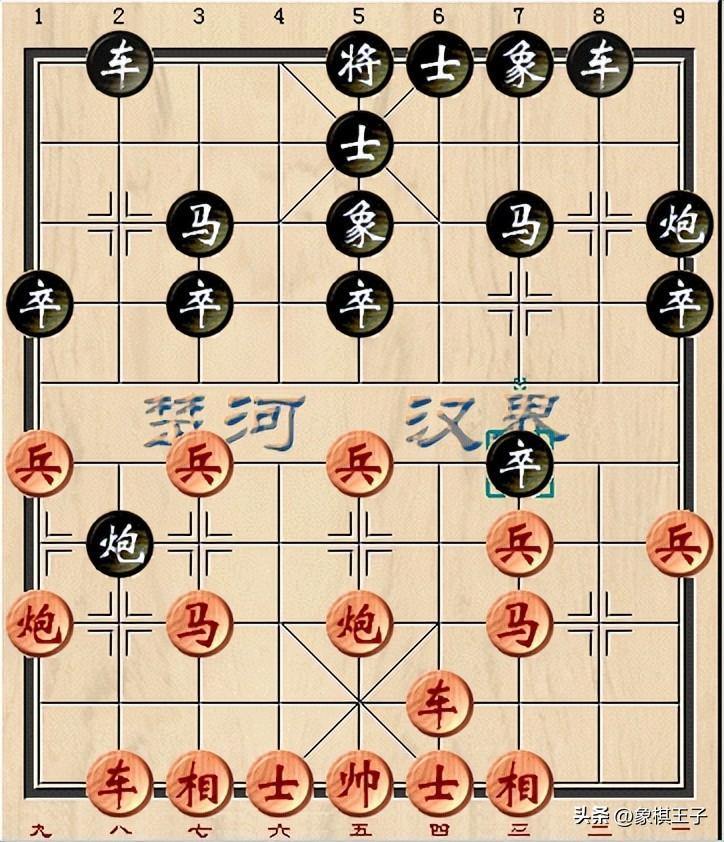 當際,局勢微有平和,紅方多一白得的三路兵,物質略優,黑方展開計劃,連兌紅棋几子後,再以換卒。