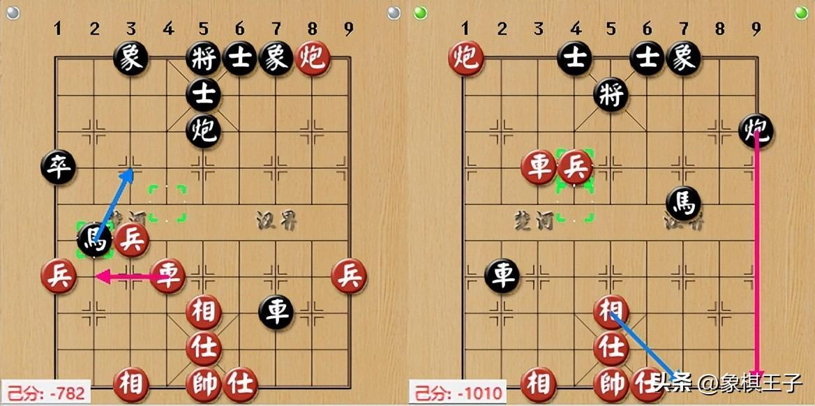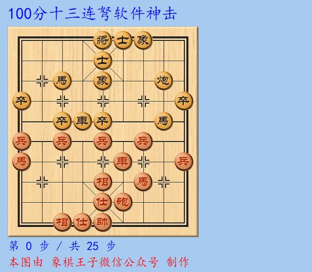 黑方再進中卒以換,王天一上演100分十三連弩軟件神擊殺式,紅方兵七進一、兵五進一、馬九進七,上仕拆炮。