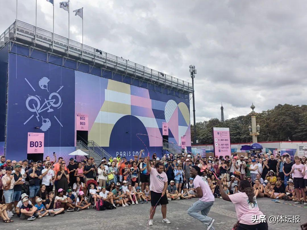 除此,更多市民喜歡參與互動,羽毛球、乒乓球、花式跳繩、足球顛球、定點投籃等都非常受歡迎,尤其是十來歲的孩子樂此不疲。去奧運賽場“軋鬧猛”,也是巴黎人喜歡的事情。