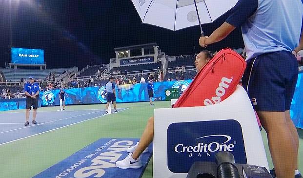 到了第二盤,鄭欽文打得依然很果斷,當然,對手弗雷澤也開始漸入佳境,其中有一局她經歷10次平分拉扯最終保下,不過當比賽進行到局數5比4,小分15比0的時候,由於辛辛那提突降暴雨,導致比賽暫停,球員們雙雙回到更衣室等待,看雨勢什麼時候能小下來。