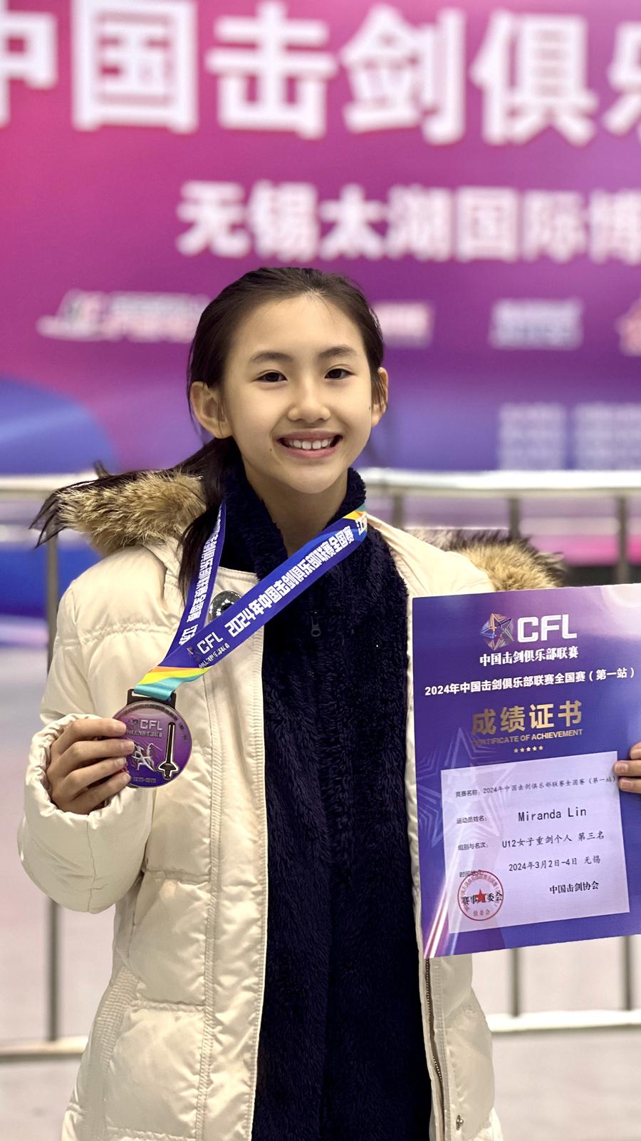 林若曦在中國擊劍俱樂部聯賽中獲獎 受訪者供圖