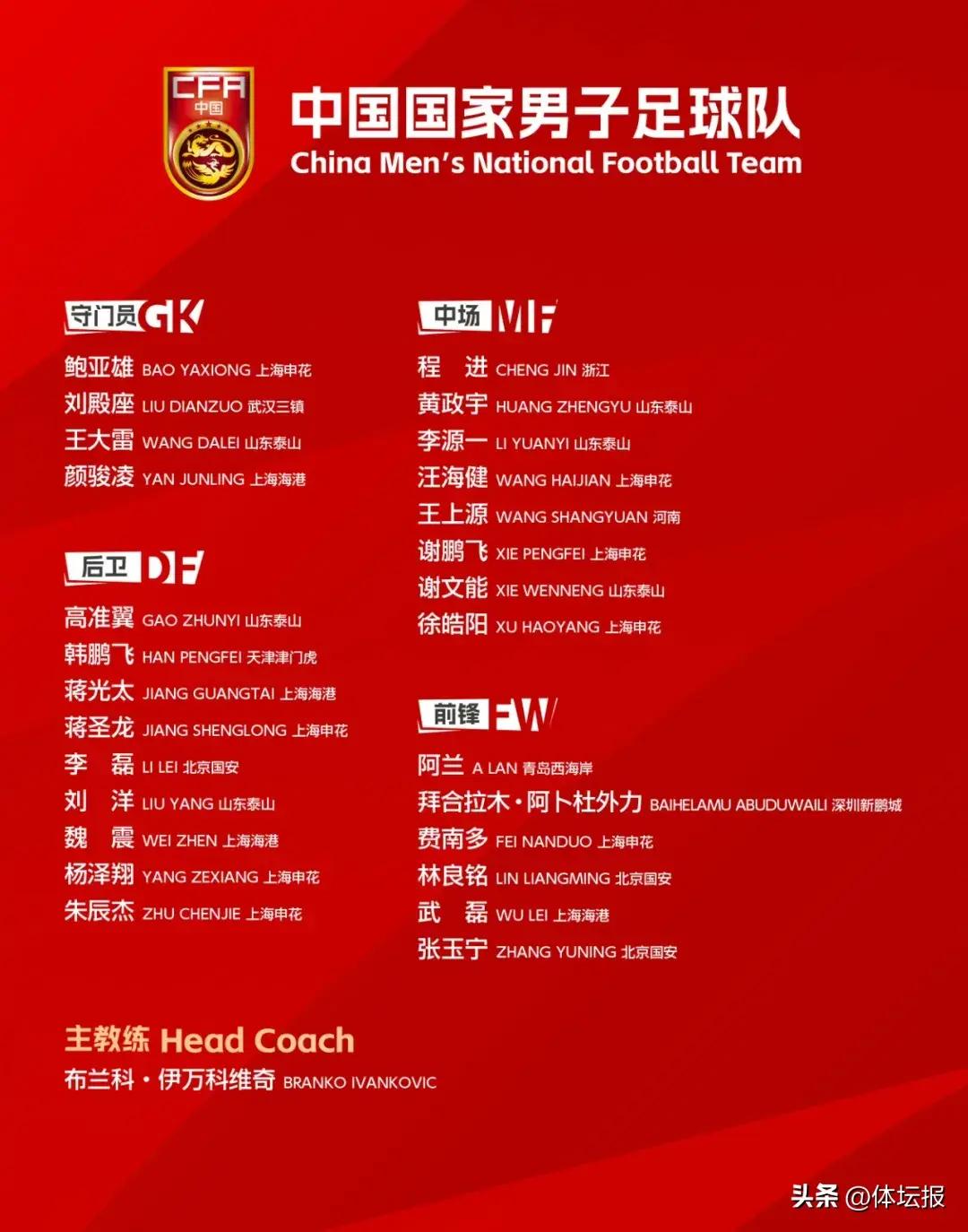 8月21日上午,國足主帥伊萬科維奇通過直播的形式公佈新一期國家隊名單,名單中的球員將參加18強賽前兩輪對陣日本和沙特的比賽。