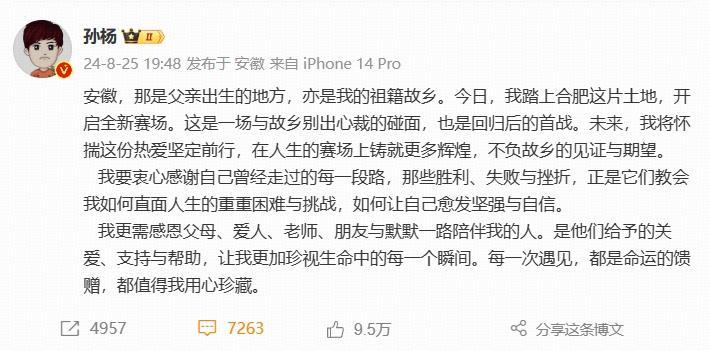 這麼多年過去了,32歲的孫楊選擇復出,面對一堆00後的運動員,我們不應該只關注他的成績,畢竟以孫楊的狀態,恢復到世界頂尖水平可能性極小,他選擇再戰泳池,更多還是基於自己的體育精神,以及對游泳的熱愛與堅持。