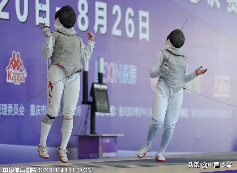中國體育訊 8月25日,2024全國擊劍冠軍賽總決賽在重慶國際博覽中心舉行。在女子花劍團體決賽中福建隊戰勝江蘇隊獲得冠軍。圖爲比賽場景。(中國體育圖片 倪敏哲 攝)