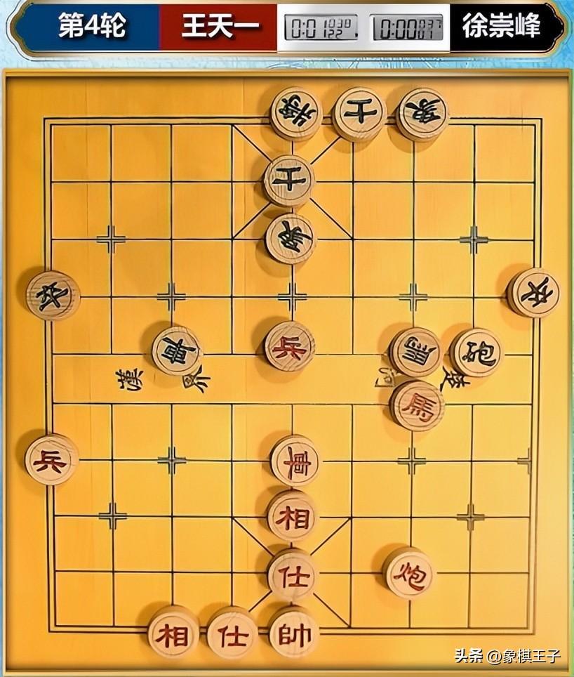 王天一目光敏銳,紅方旋即下兵,兵五進一,連衝兩步,以一兵快破黑方雙象內防。