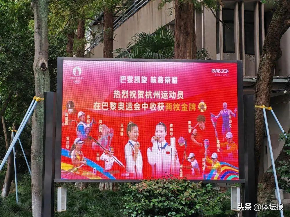 走進位於西子湖畔、黃龍洞旁的杭州市陳經綸體育學校,“今日體校生,明天奧運星”的標語依舊醒目。不遠處的電子顯示屏上,滾動播放着學校培養輸送參加巴黎奧運會的運動員照片。其中最顯目的位置,留給了收獲金牌的王瀾靜和黃雅瓊。